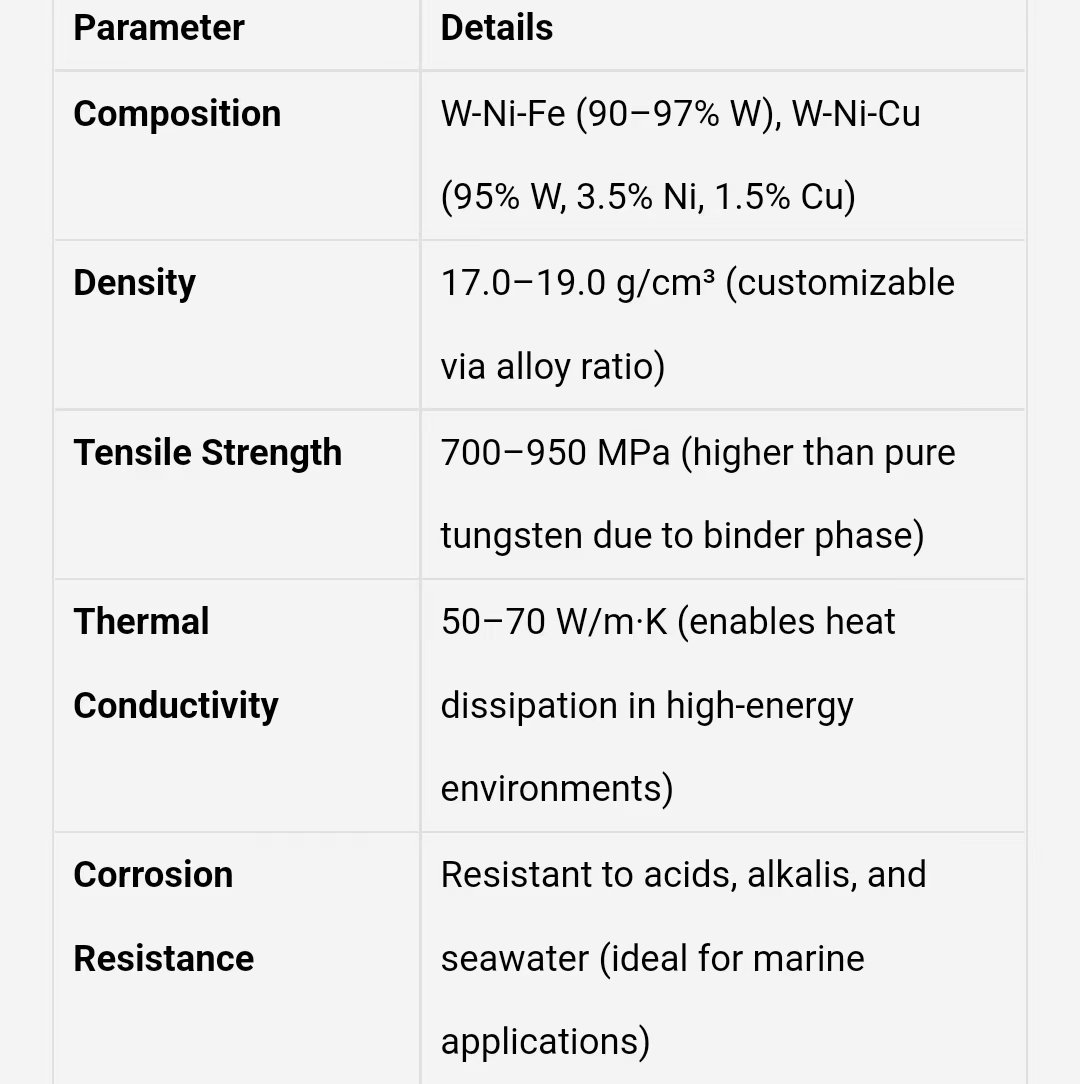 Tungsten alloy ballast/counterweights are engineered for applications requiring extreme density, compact size, and non-toxic properties. Comprising 90–97% tungsten with nickel, iron, or copper binders, these alloys offer a density range of17–19 g/cm³(up to 65% denser than lead) and are widely used in aerospace, automotive, marine, and sports industries. Their unique combination of high mass-to-volume ratio, corrosion resistance, and machinability makes them ideal for balancing, vibration damping, and radiation shielding.