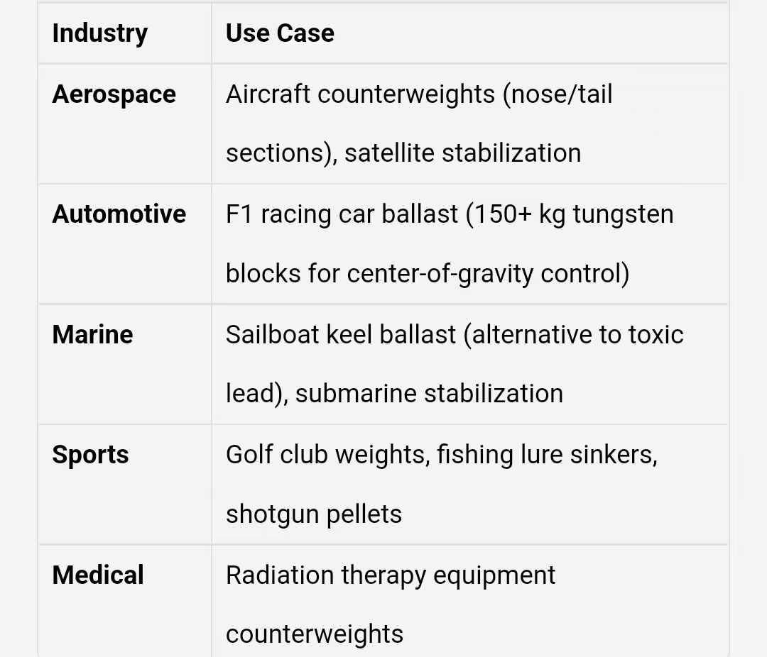 These tungsten ballast components provide critical performance across aerospace, automotive, marine, and radiation-sensitive sectors. Their compact high-density design enables size reduction in weighted assemblies, facilitating aerodynamic tuning in racing and aerospace applications. The alloys’ compliance with AS9100, NRC, and FDA standards ensures suitability for nuclear and medical radiation shielding uses. As high-performance tungsten weights, they optimize mass distribution, vibration damping, and gyroscopic balancing in rotating machinery, while supporting detachable configurations suitable for dynamic operational conditions.